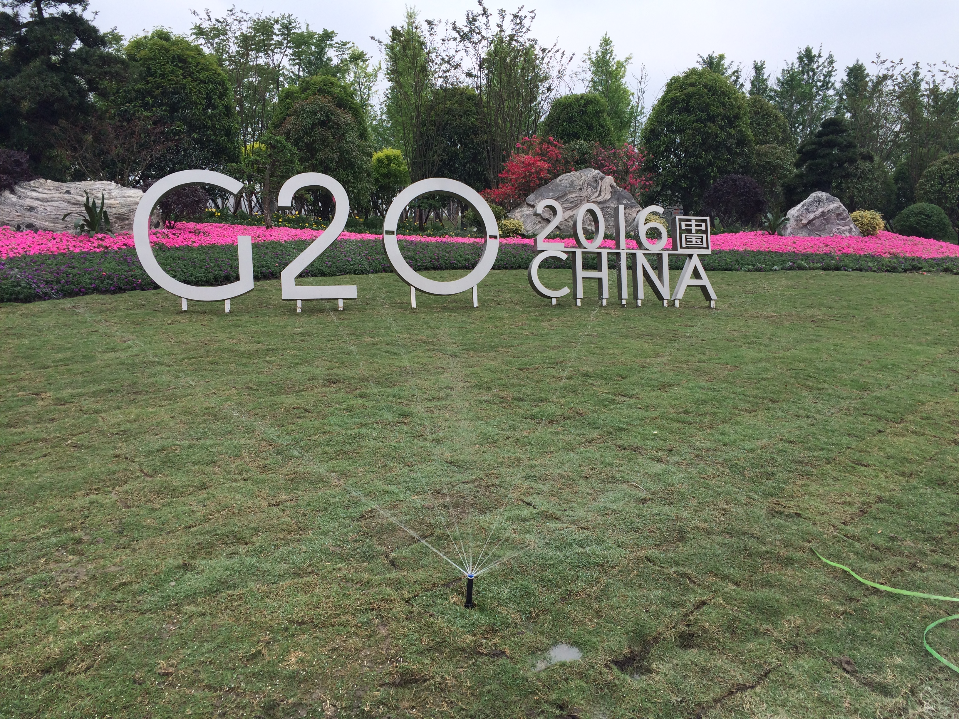 美國知名灌溉設備——HUNTER灌溉系統服務峰會綠地。綠友公司根據現場情況,為2016年杭州G20峰會國際會議中心、西湖國賓館、奧體中心、國際博覽中心屋頂花園等相關場所量身打造出智能、節能的自動灌溉控制系統。小型、不規則道路綠化帶,采用 NODE 無線電池系統和 MP 多射線低灌溉強度節水噴頭。大型、公共養護綠地,采用中央遠程 GPRS 通訊、ACC 兩線解碼,配 ET 蒸發蒸騰及土壤濕度傳感系統以及角度自動恢復的 PGP 旋轉噴頭。亨特產品和綠友服務得到項目方認可。