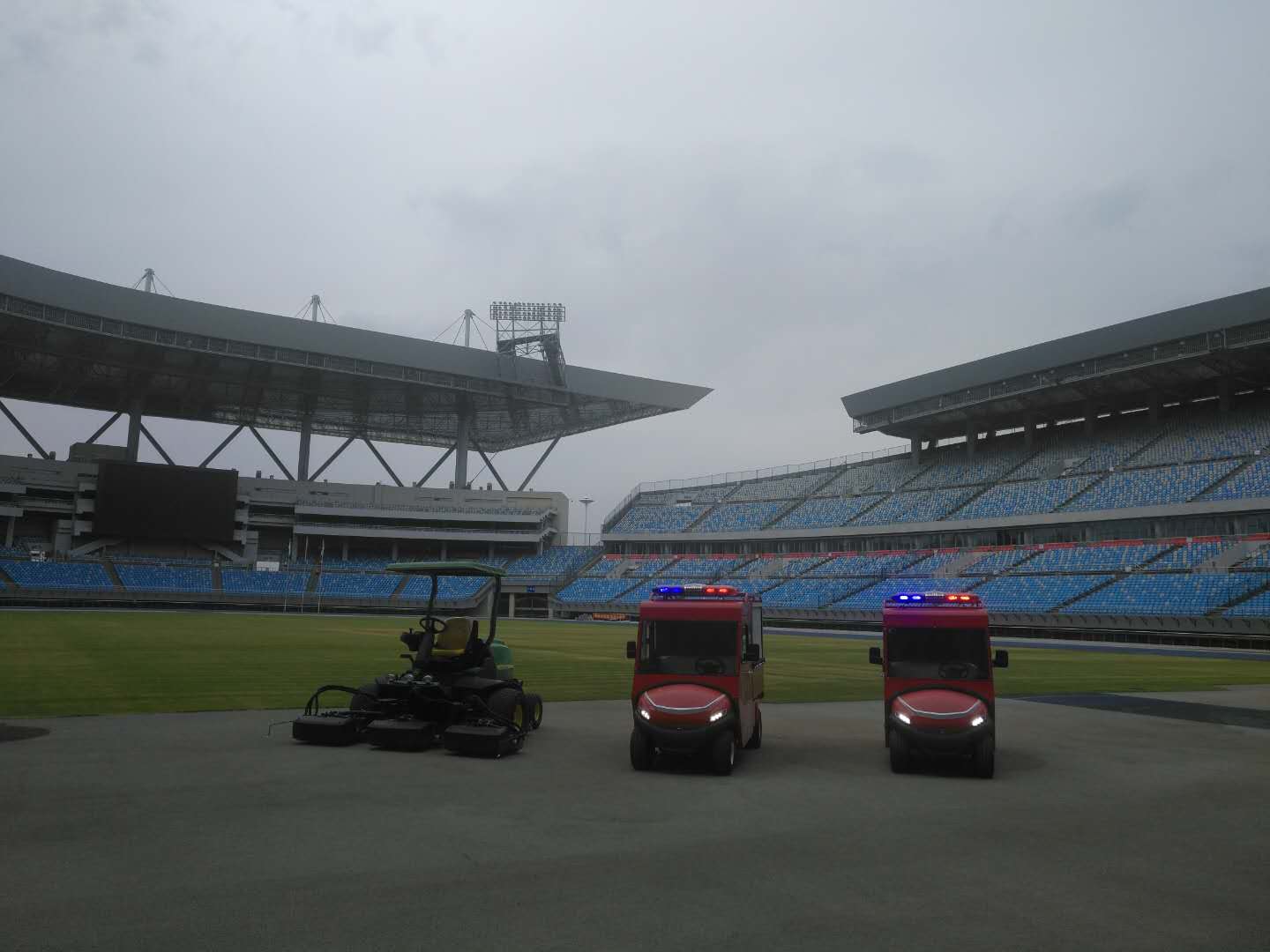 2018年7月在河北石家莊奧體中心交付2臺綠友研發生產的純電動消防車。