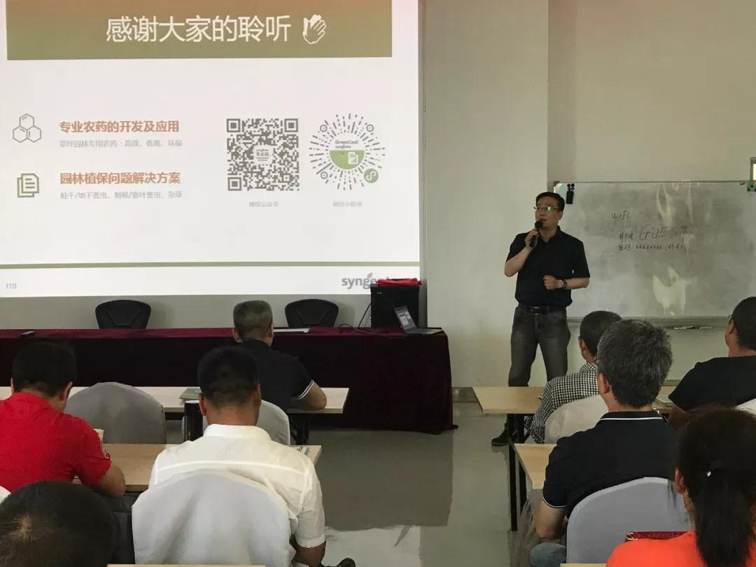 培訓課上,綠友機械集團股份有限公司植保部總經理顧新麗和先正達(中國)投資有限公司專業環境部技術主任李鵬分別為我們分享了《園林重大病蟲害的發生與防治(案例分析)》、《園林專業農藥的開發應用及常見問題質保方案》兩個話題。