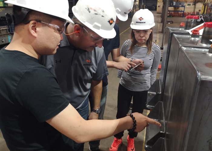 在木霸克國際市場總經(jīng)理Curt 先生的帶領(lǐng)下,綠友一行進(jìn)入木霸克的生產(chǎn)車間,了解每一臺高品質(zhì)產(chǎn)品是如何生產(chǎn)出來。從生產(chǎn)計劃,金屬加工,材料分選,品質(zhì)控制,現(xiàn)場管理,配件存儲,人員培訓(xùn),木霸克工廠毫無保留展示每一處生產(chǎn)細(xì)節(jié),而依靠這些細(xì)節(jié)的管控才能造就木霸克的品質(zhì)和市場認(rèn)可。參觀期間,Curt特意強(qiáng)調(diào)了材料分選是木霸克設(shè)備和其他品牌產(chǎn)品的重要區(qū)別,木霸克針對每一部位應(yīng)用和受力不用,在材料選擇都會進(jìn)行區(qū)分,例如進(jìn)料口下方的金屬板面由于需要經(jīng)受長時間撞擊,這塊板面的選擇使用和美國坦克裝甲相同材料,并以不同顏色區(qū)分開。當(dāng)消費者購買設(shè)備時,面對不同品牌產(chǎn)品都是光鮮亮麗,而隱藏在漆層下面的細(xì)節(jié)決定他們之間的區(qū)別,發(fā)現(xiàn)這些細(xì)節(jié)的不同則需要深入生產(chǎn)車間,而這也是木霸克最希望客戶參觀他們生產(chǎn)的原因。