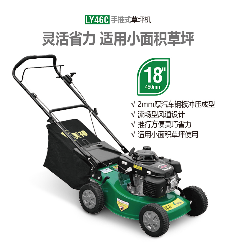 18寸草坪修剪機,適合小面積草坪的修剪作業:如社區,單位,學校,廣場等場所。
