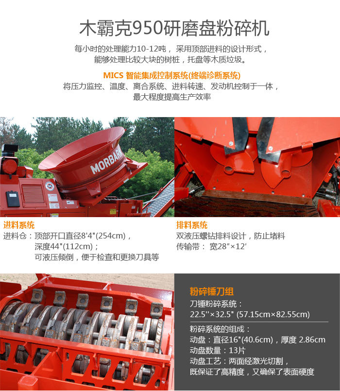 950立式粉碎機,每小時的處理能力10-12噸, 采用頂部進料的設計形式,能夠處理比較大塊的樹樁,托盤等木質垃圾。